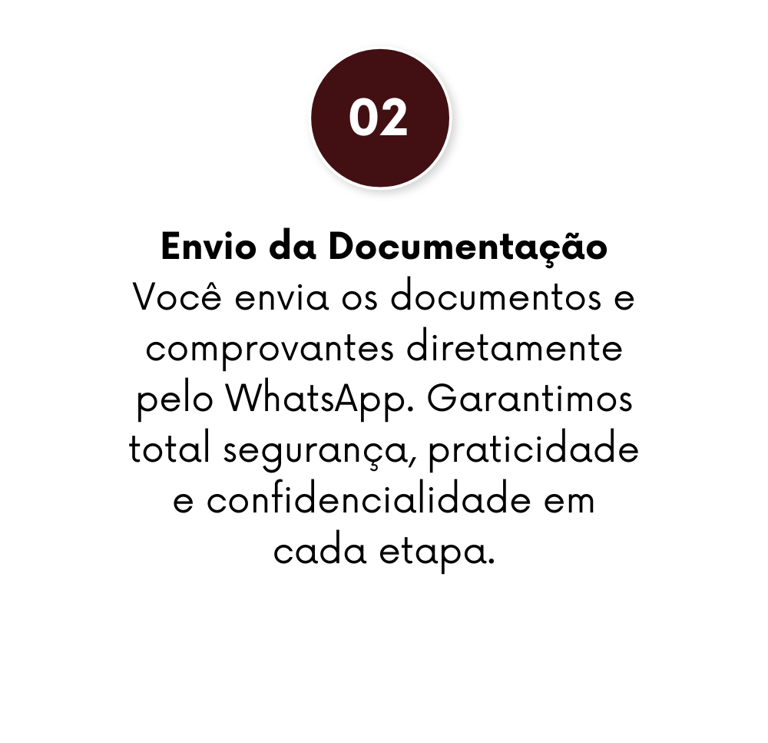 É totalmente online, via WhatsApp. Você resolve tudo sem sair de casa.